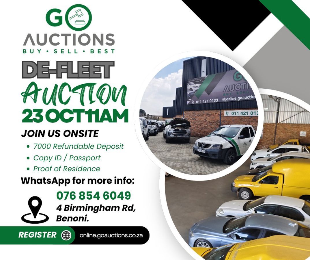 Please email requested documents to deposits@goauctions.co.za upon registration.