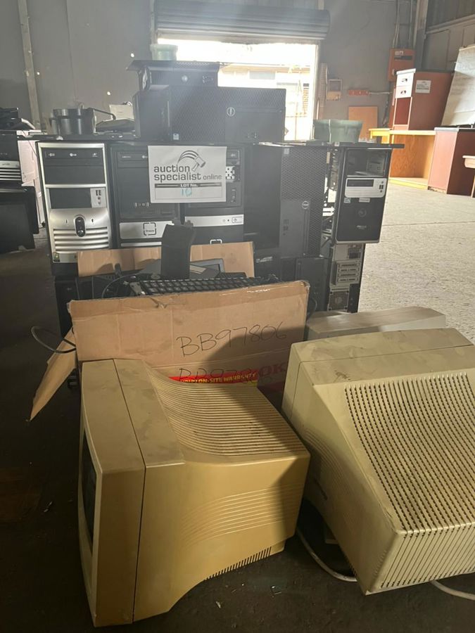 3-seater terminal seating benches • Office chairs • Computer towers • Monitors •
