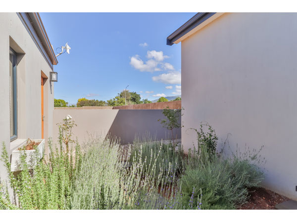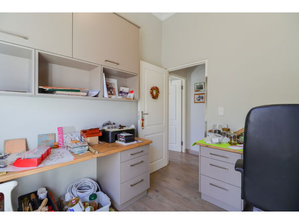 This low maintenance property offers beautiful open plan living areas and double volume ceilings. The kitchen offers ample cupboards space with a separate scullery/laundry room. There are 3 Bedrooms and 2 bathrooms, the full bathroom is en-suite. Adjacent to the kitchen is an enclosed braai room. The double garage has built-in cupboards. Inverter included