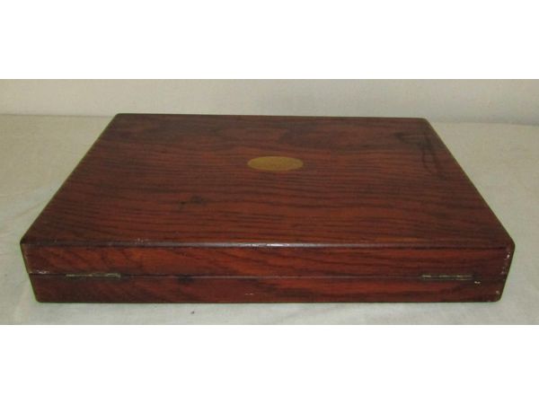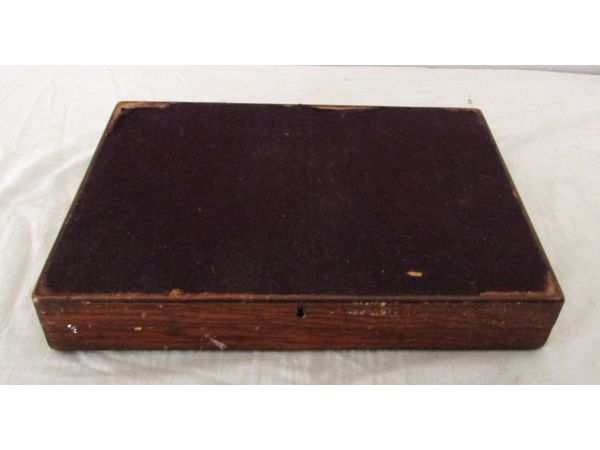 This is a delicately engraved 24 piece set of fish knives and forks with bone handles dating from the Art Nouveau period as can clearly be seen in its design that is typical of the period. The knifes have been clearly stamped with A&D S and an hourglass. Due to space limitations on the forks only the knives had these marks. This mark belongs to Allen and Darwin in Sheffield, England. The set comes in its original presentation box, made from walnut, fitted with brass hardware throughout and lined in blue velvet. It measures approximately 35cm X 25.5cm X 12cm. We even know the upholsters responsible for the velvet lining as their label is still present on the inside of the box. They were Franklin and Hare based in Taunton. A brass plaque sits at the center of the lid. It was customary to engrave the initials of the lucky recipient of this beautiful gift here. No engraving was ever done leaving it open to engrave your own. The key is still present and the lock mechanism works perfectly. The box does show some wear consistent with age and use and there is what appears to be a water stain on the lid. The Velvet lining is in very good vintage condition with no rips or damage but could probably benefit from a good, professional cleaning.
