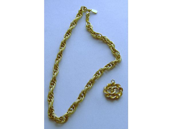 Authentic signed and numbered Coco Chanel CC Logo 18ct gold plated Pendant. This specific Chanel mark dates from around 1968-1974 - Well loved piece with some wear to plating. 18ct gold Plated Chanel Style Byzantine Chain choker necklace marked Classics made in Korea - In excellent vintage condition.