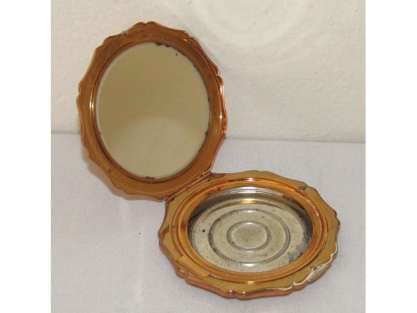 Silver and gold tone velvet lined ring box in good condition with a bit of age related wear. Stratton Machine Tooled Powder compact - some surface wear. 1 Stratton Lipstick compact - good condition. 2 Vintage lipstick compacts - good condition with some age related wear.