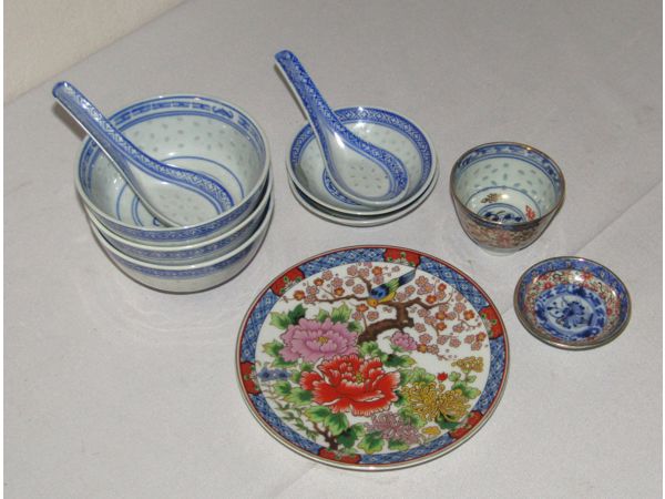 Vintage blue and white Rice pattern porcelain hand-painted made in China. Single Japanese made decorative wall plate. All in very good vintage condition with no chips, cracks or crazing.