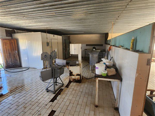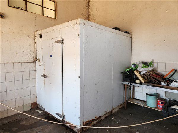 Abattoir 120 m2 with 6.4 x 2.3 m freezer and 2 x 2.3 cold room and skin room.