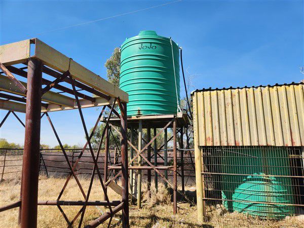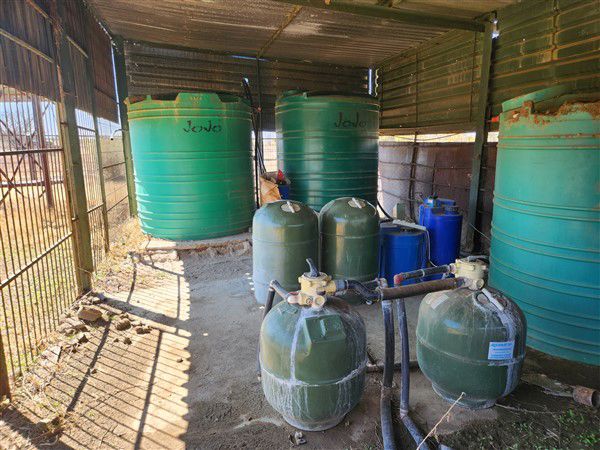 4 x boreholes, 2 x concrete dams, 8 x Plastic storage tanks, Water treatment plant.