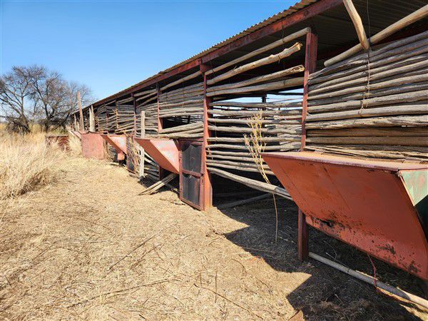 Game pens – Steel construction under roof 56 pens. Can be utilized for other Domestic farm animals. Needs attention.