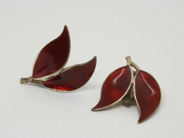DAVID ANDERSON SILVER & ENAMEL EARRINGS & BROOCH