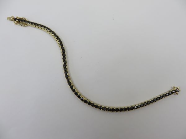 GOLD PLATED SILVER & BLACK STONE TENNIS BRACELET