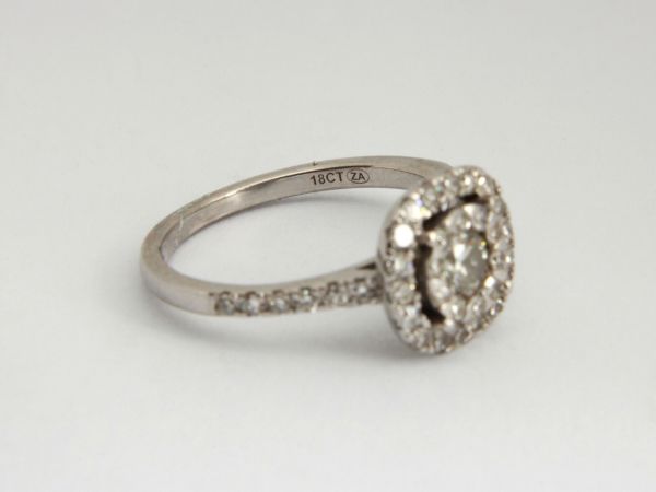 Stamped. Set with an approximate 0.25ct centre diamond & accent diamonds totalling 0.75ct