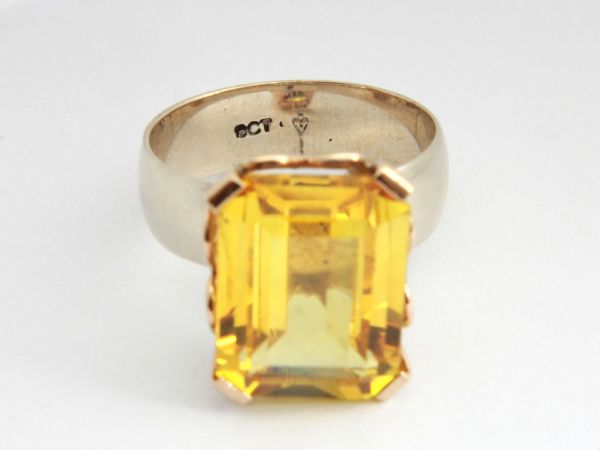 Stamped. Set with an emerald cut 16 x 12mm lemon quartz