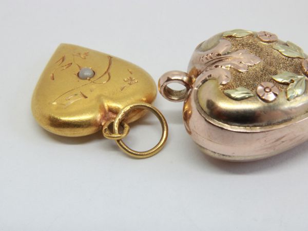 2 X VINTAGE GOLD HEART PENDANTS