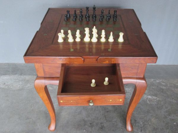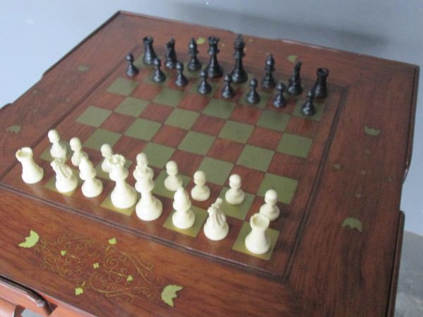 BRASS INLAID GAMES TABLE 78X74X73CM