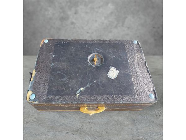 Circa 1900 Leather clad gentleman's Cufflink box, musical.