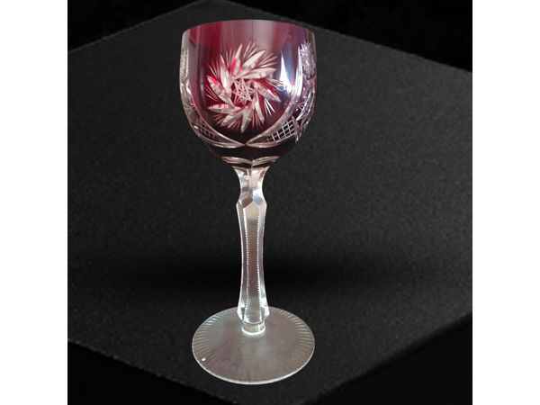 A set of 6 Bohemian hand cur crystal harlequin Hog glasses
