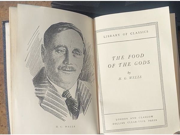 Collection: Titles include "Dombey and Son" and "Oliver Twist" by Charles Dickens, "The Food of the Gods" by H.G. Wells, "Livingstone the Liberator" by James I. Macnair, "Children of the New Forest" by Captain Marryat, "Selected Essays" by G.K. Chesterton, and "The Vicar of Wakefield" by Oliver Goldsmith.