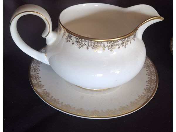 Royal Doulton English Fine Bone China Set, Gold Lace pattern.