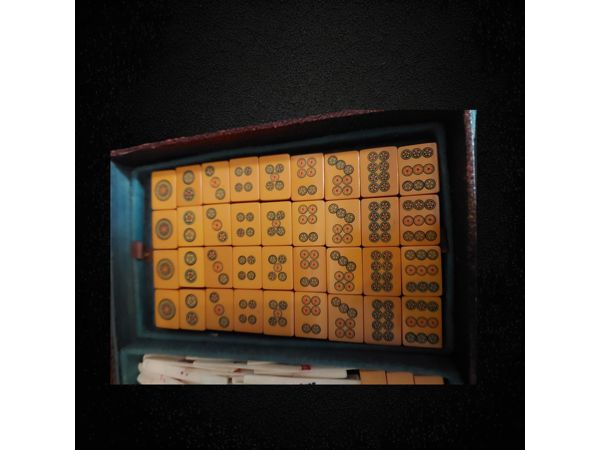 126 Ivory betting sticks, enamelled bamboo tiles, counter and ivory dye.
