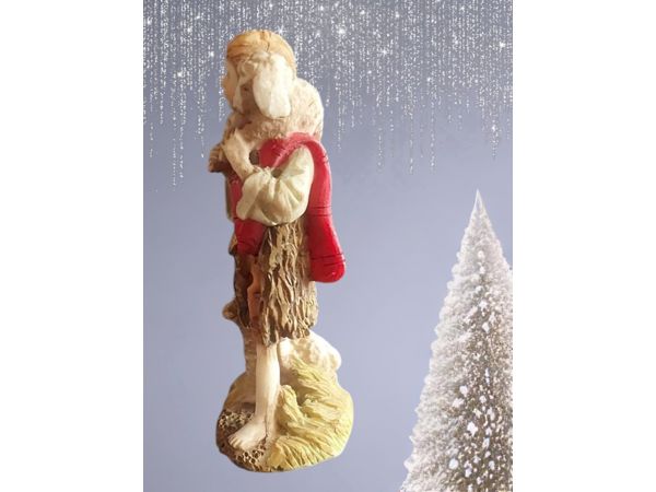 A manger, baby Jesus, Joseph, Mary, an angel, a shepherd and a sheep