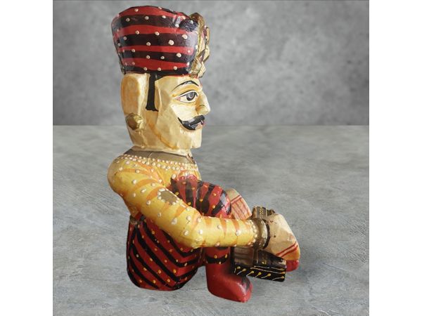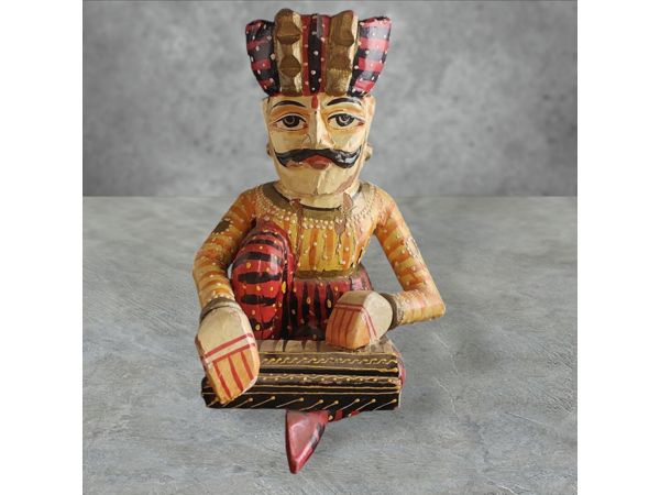 A pair of hand crafted wooden Laxman Art Rajasthani Musicians.