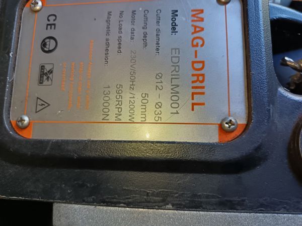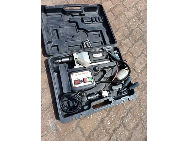 MAC AFRIC Magnetic Drill model: EDRILM001. Magnet Pressed Drill for Sale Ideal for Steelwork Applications We're selling a magnet pressed drill, perfect for steel fabrication and engineering projects. This drill makes quick work of drilling holes in steel, saving you time and effort. Key Features: - Powerful magnetic base for secure drilling - Efficient drilling process with minimal setup time - Ideal for drilling holes in steel plates, pipes, and other metalwork Well-Maintained Condition The drill has been well-maintained and is in good working condition. Regular oiling has ensured smooth operation and extended the lifespan of the drill. Why Buy? - Increase productivity with faster drilling times - Improve accuracy with the magnetic base - Perfect for steel fabrication, engineering, and construction projects