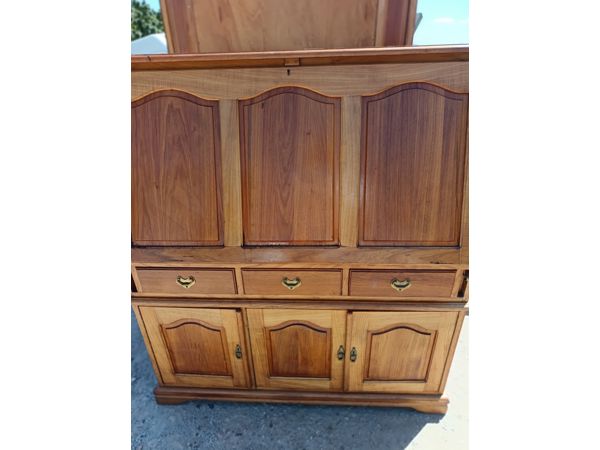 Wood Cabinet - Exquisite Craftsmanship & Timeless Elegance!A stunning antique wood cabinet, showcasing exceptional craftsmanship and sophistication. Description: - Material: Solid wood - Size: 1260wide 700mm deap 1430 high - Features: Intricately carved doors, drawers, and trim; ornate hardware This magnificent cabinet boasts a rich, warm patina and exceptional attention to detail. The intricate carvings and ornate hardware evoke a sense of luxury and refinement, making it a perfect addition to any discerning collector's home or office. Don't miss this rare opportunity to own a piece of history!