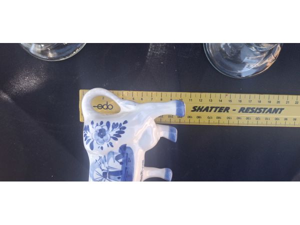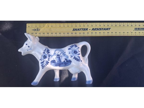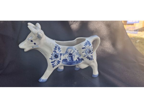Hand-painted Delft Blue cow-shaped creamer from Holland.