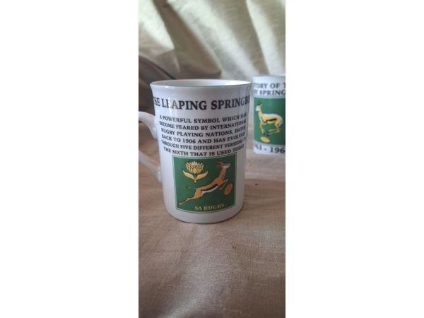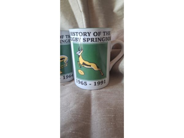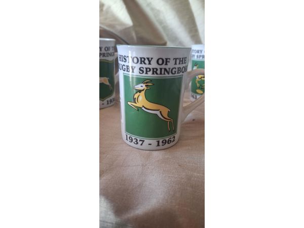 Set of 4 collectible mugs featuring the history of the Rugby Springbok emblem.