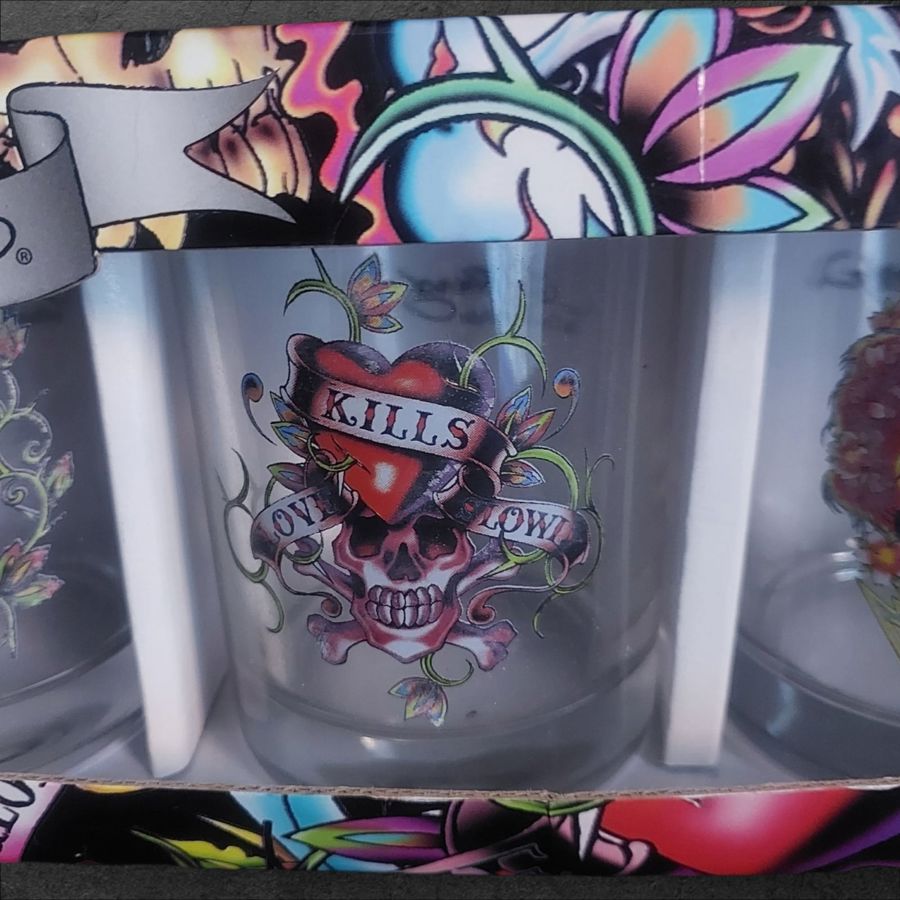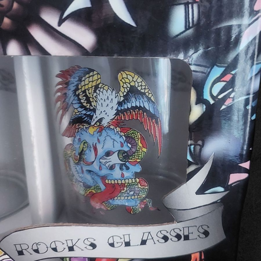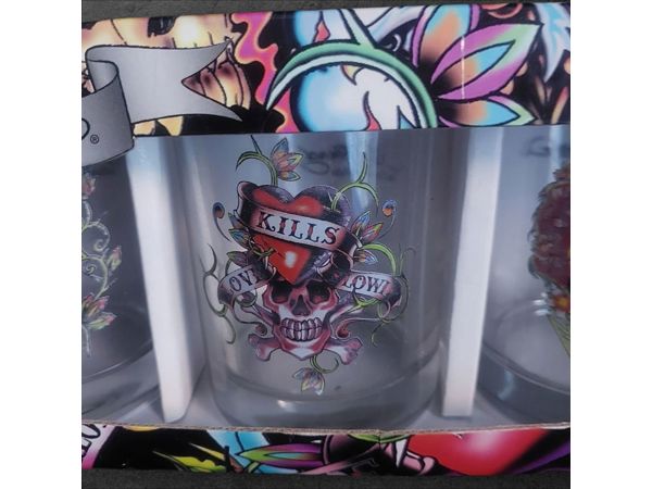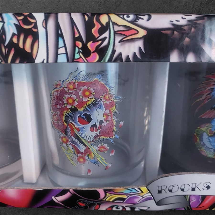 104 - Ed Hardy Tattoo Design Whiskey Glass Set