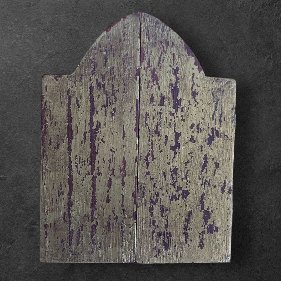 Antique religious triptych icon featuring three painted panels with central depiction of Madonna and Child and flanked by saints.
