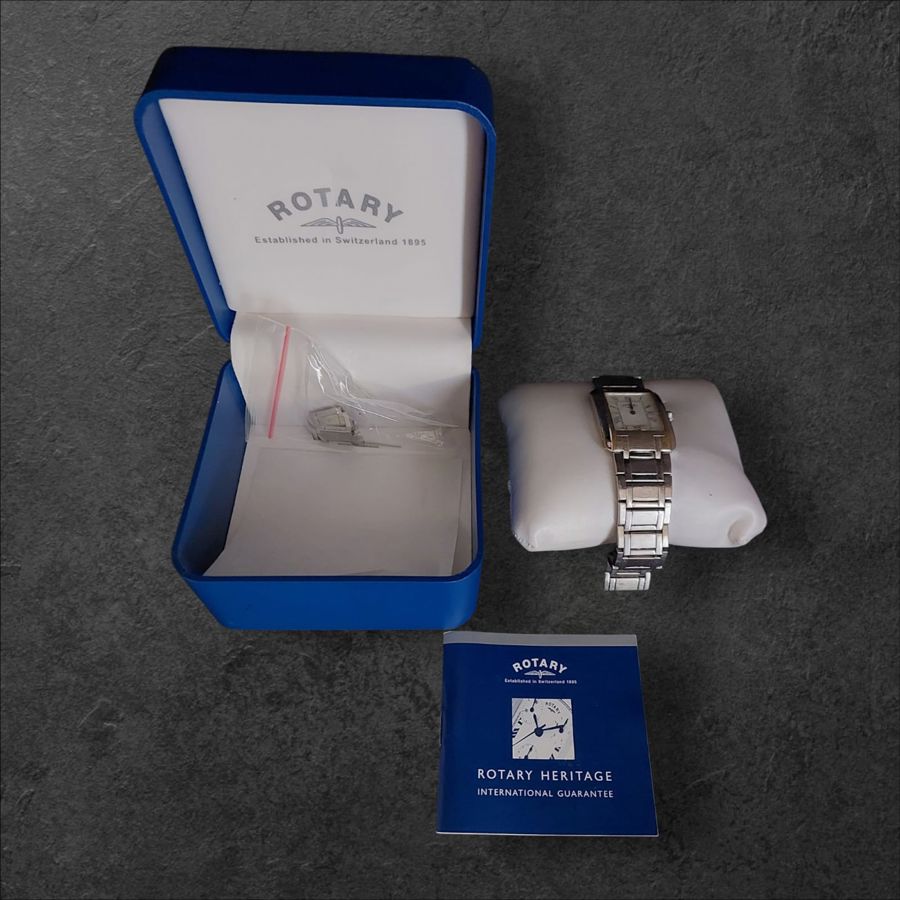 Rotary Heritage Rectangular Watch with box and documentation.
