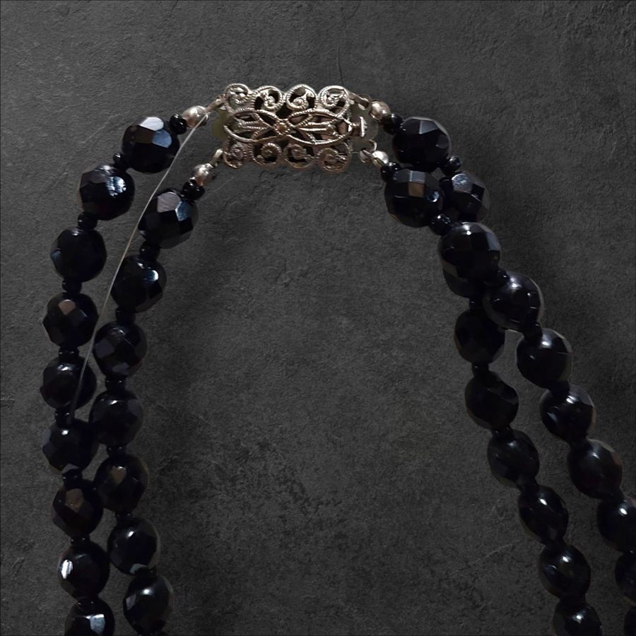 Victorian Jet beaded necklace with matching clip-on earrings.