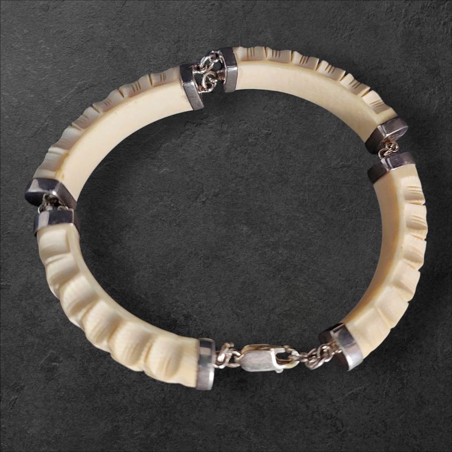 Vintage Ivory Bracelet with Sterling Silver Accents