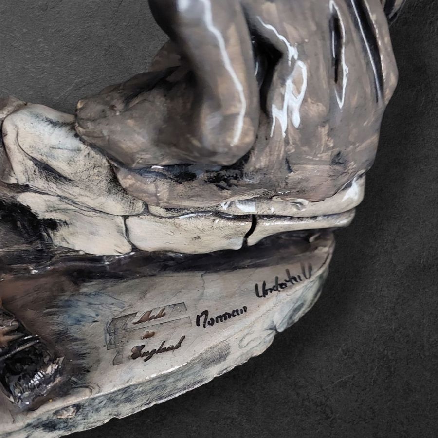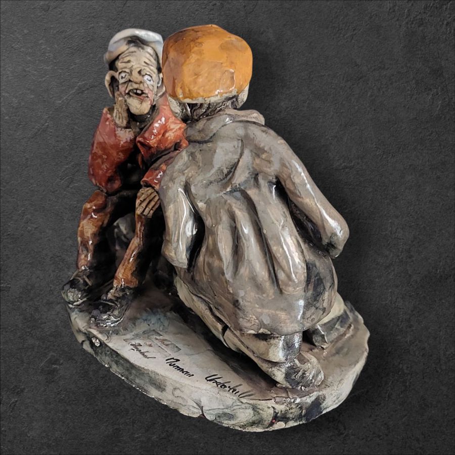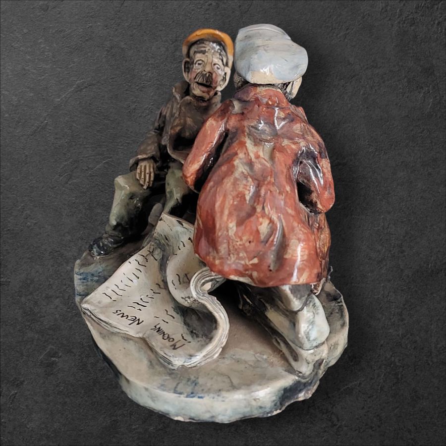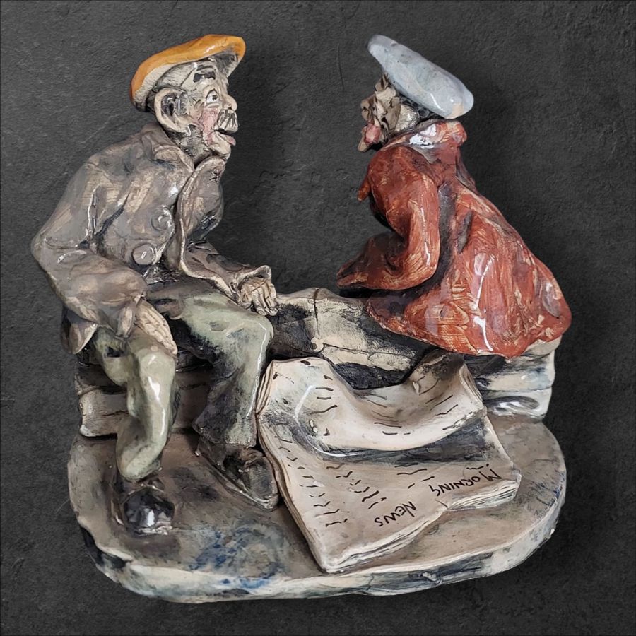 Norman Underhill Ceramic Figurine of two elderly men seated on a bench.
