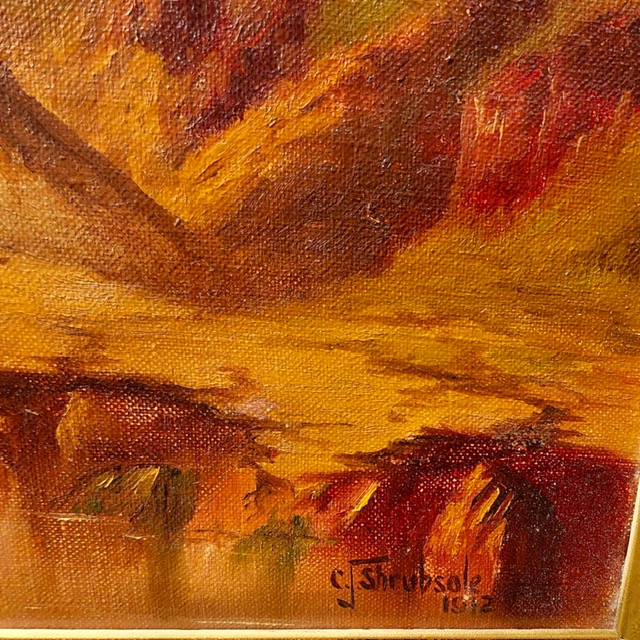 C.J. Shrubsole 1912 oil on canvas painting depicting a seascape.
