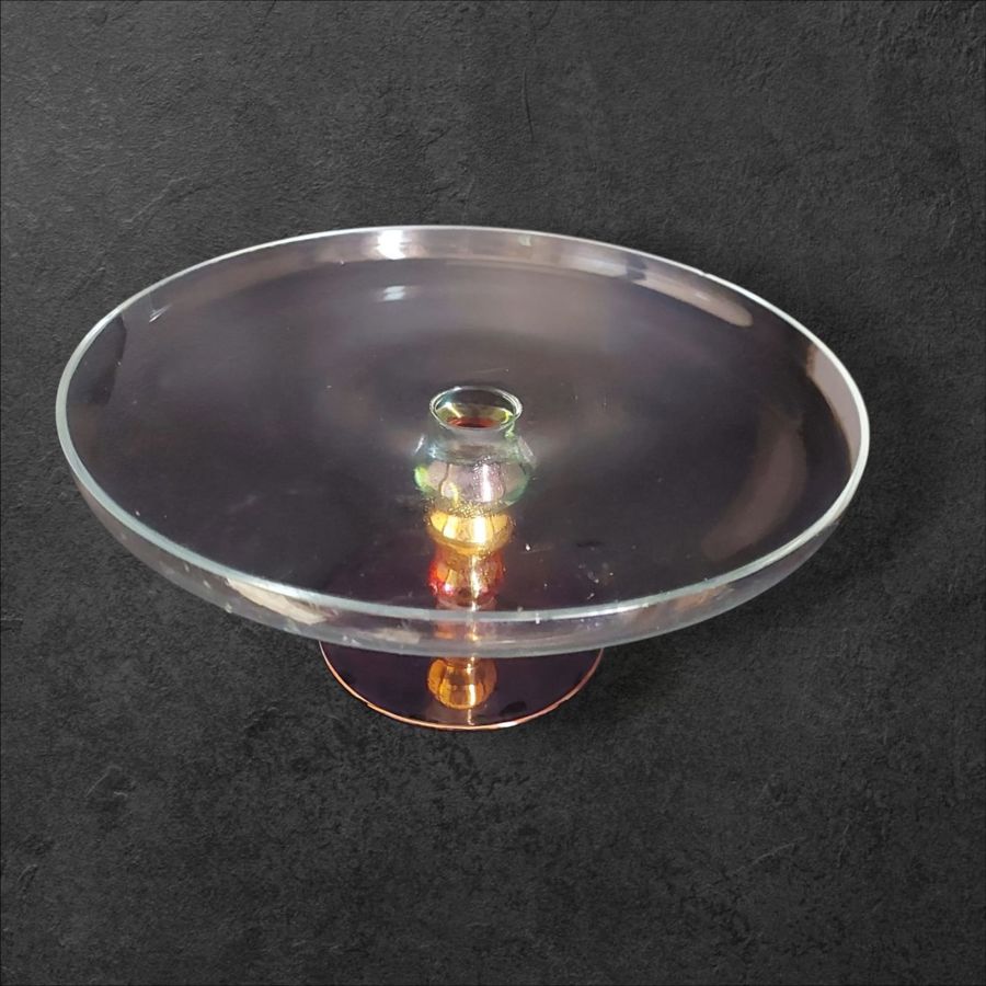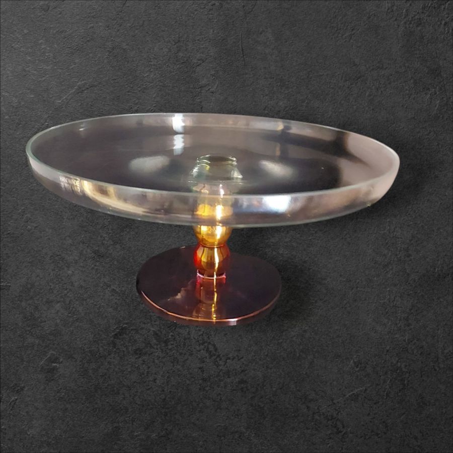 KROSNO Poland Glass Cake Stand with Colored Stem
