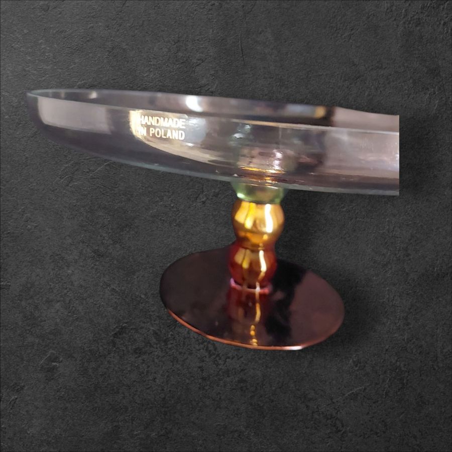 Krosno Glass Cake Stand with a colored stem, handmade in Poland.