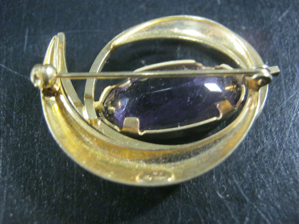 14CT ROLLED GOLD BROOCH WITH AMETHYST, 38mm Wide
