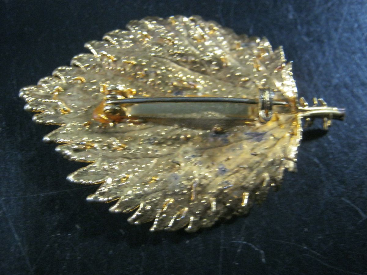 GOLD DIPPED BIRCH LEAF BROOCH WITH TWO PEARLS, 55mm Wide