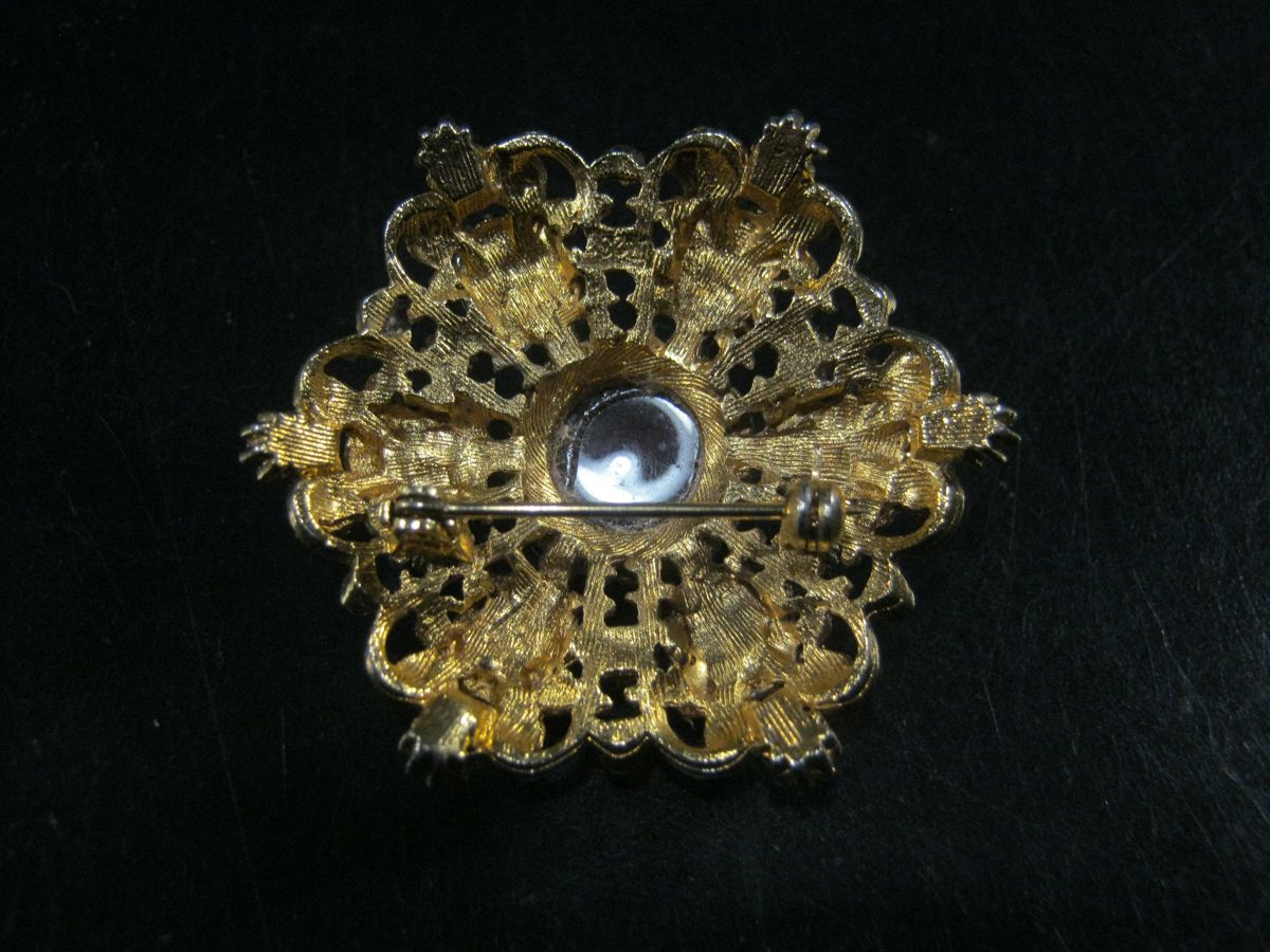GOLD PLATED BROOCH WITH TIGER'S EYE STONES, 47mm Wide