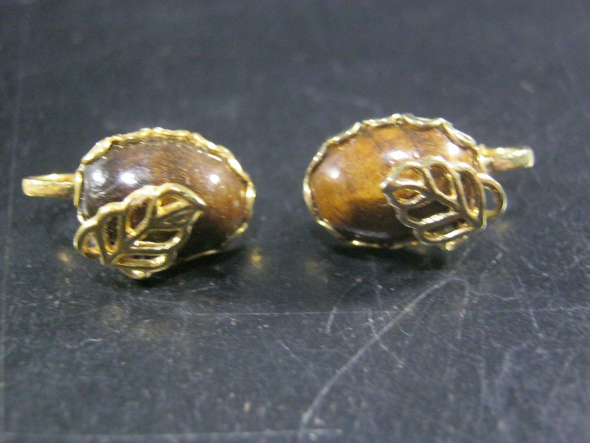 GOLD PLATED EARINGS WITH TIGER'S EYE STONES, 15mm Long