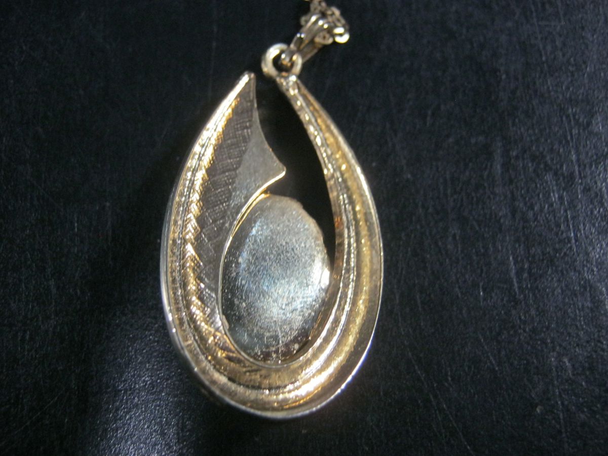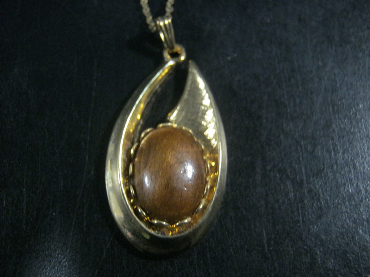 GILT TIGER'S EYE PENDANT ON CHAIN, Pendant 48mm Long
