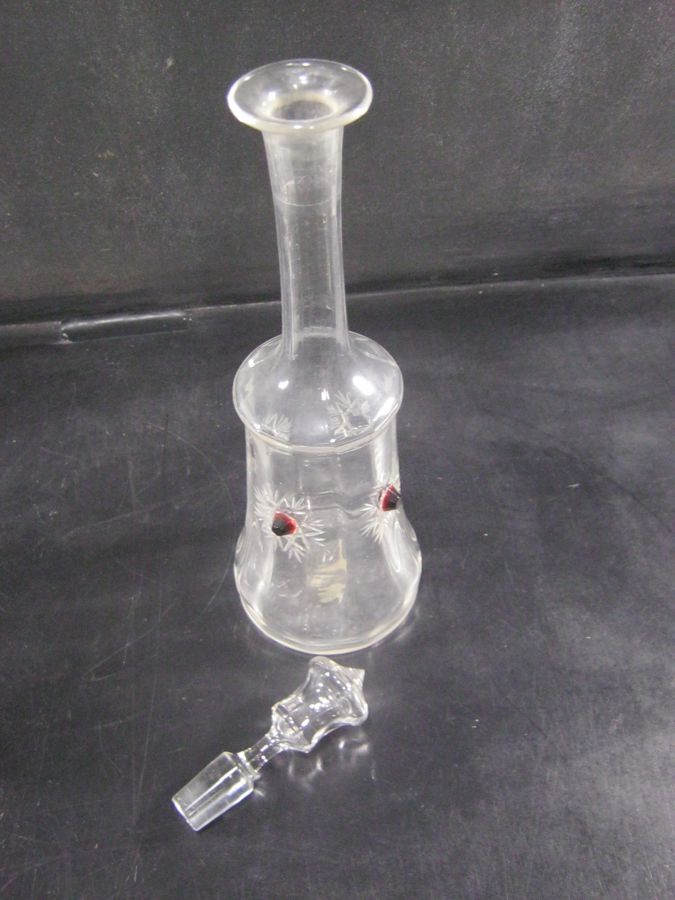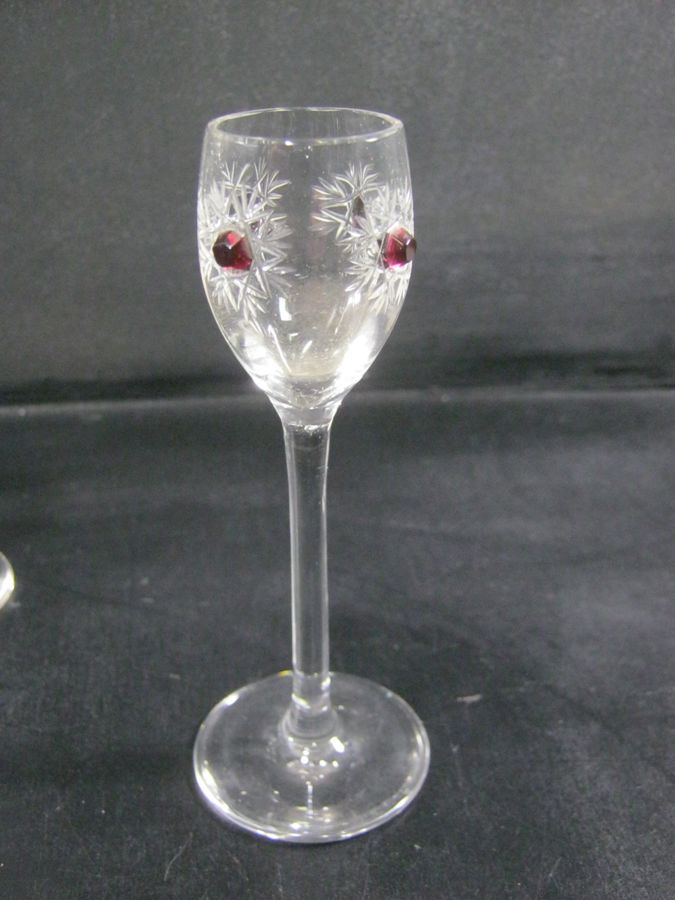 CUT CRYSTAL AND RUBY VODKA DECANTER AND 4 X GLASSES