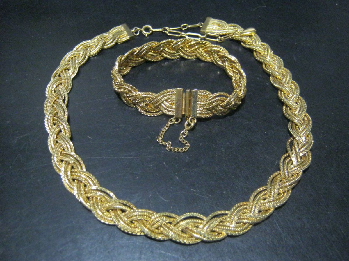 GOLD PLATED MESH NECKLACE AND BRACELET, Necklace 40cm Extendable