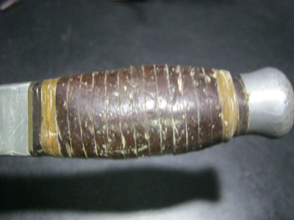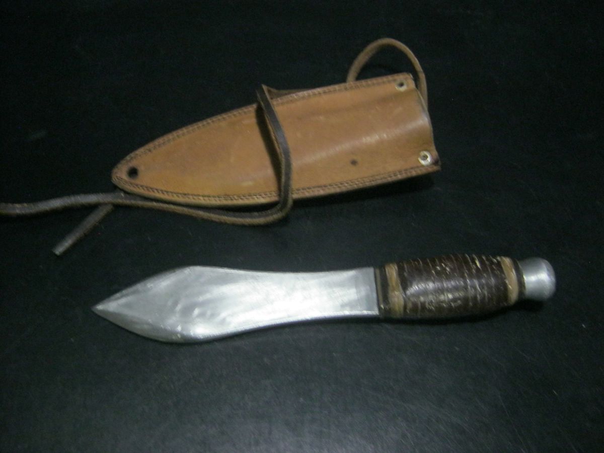 VINTAGE KNIFE IN LEATHER TIE ON SHEATH, 20.5cm Long