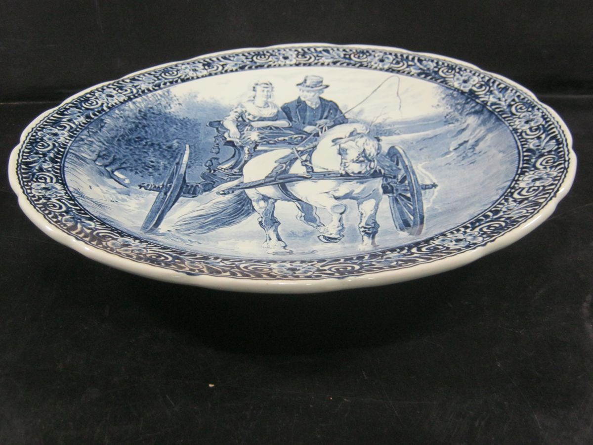 DELFTS BOCH 'HORSE DRAWN CART' DISPLAY PLATE, Mid Century, 39.5cm Diameter