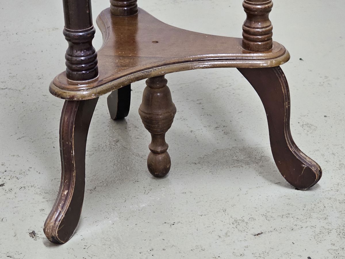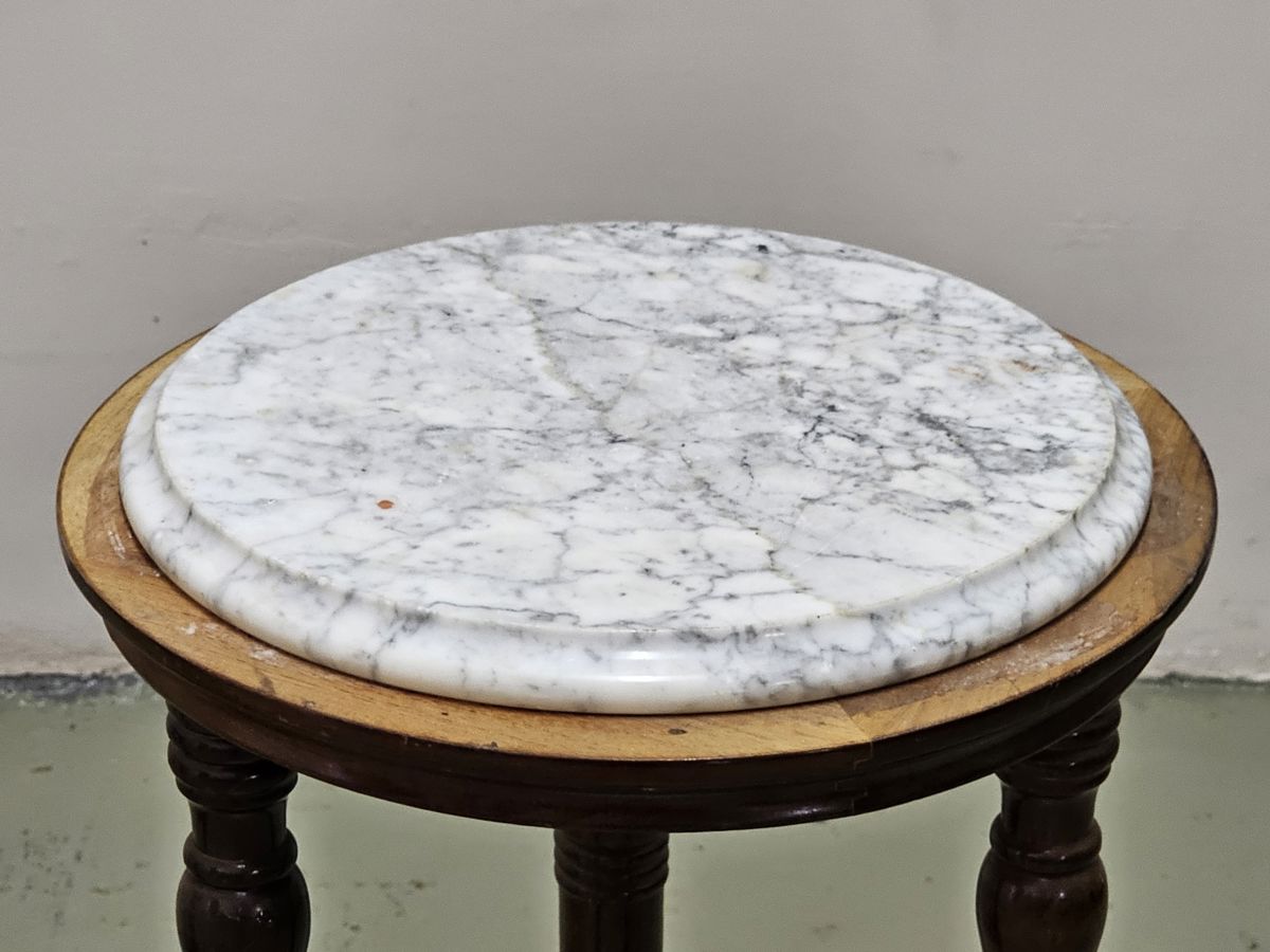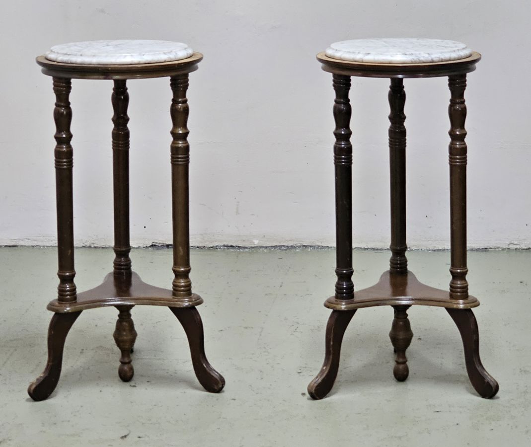 Classic wooden stands with marble tops (replacements). Please note: the marble tops are loose and will need to be refitted.