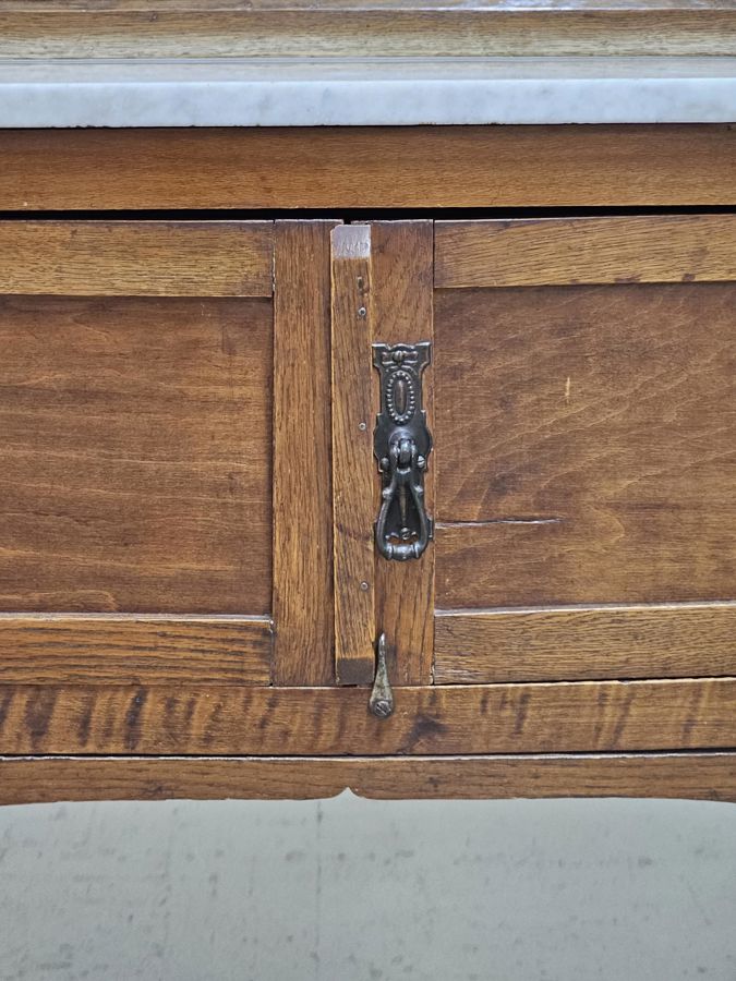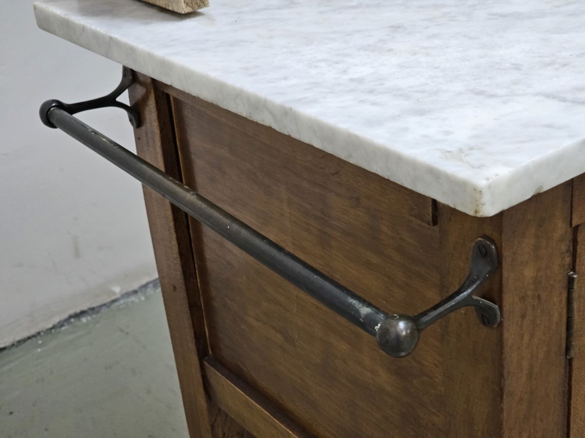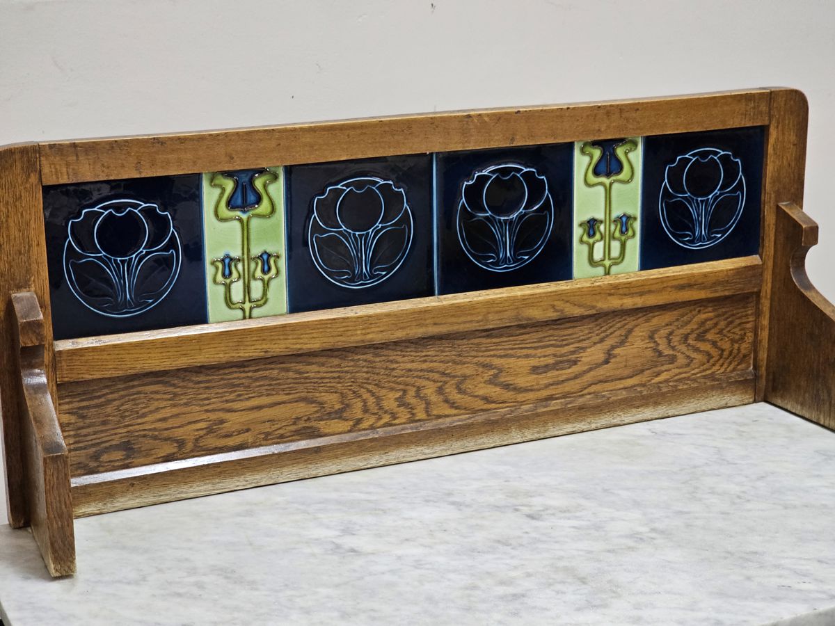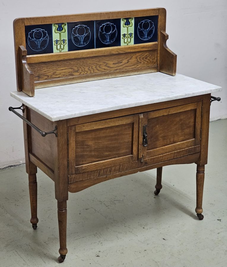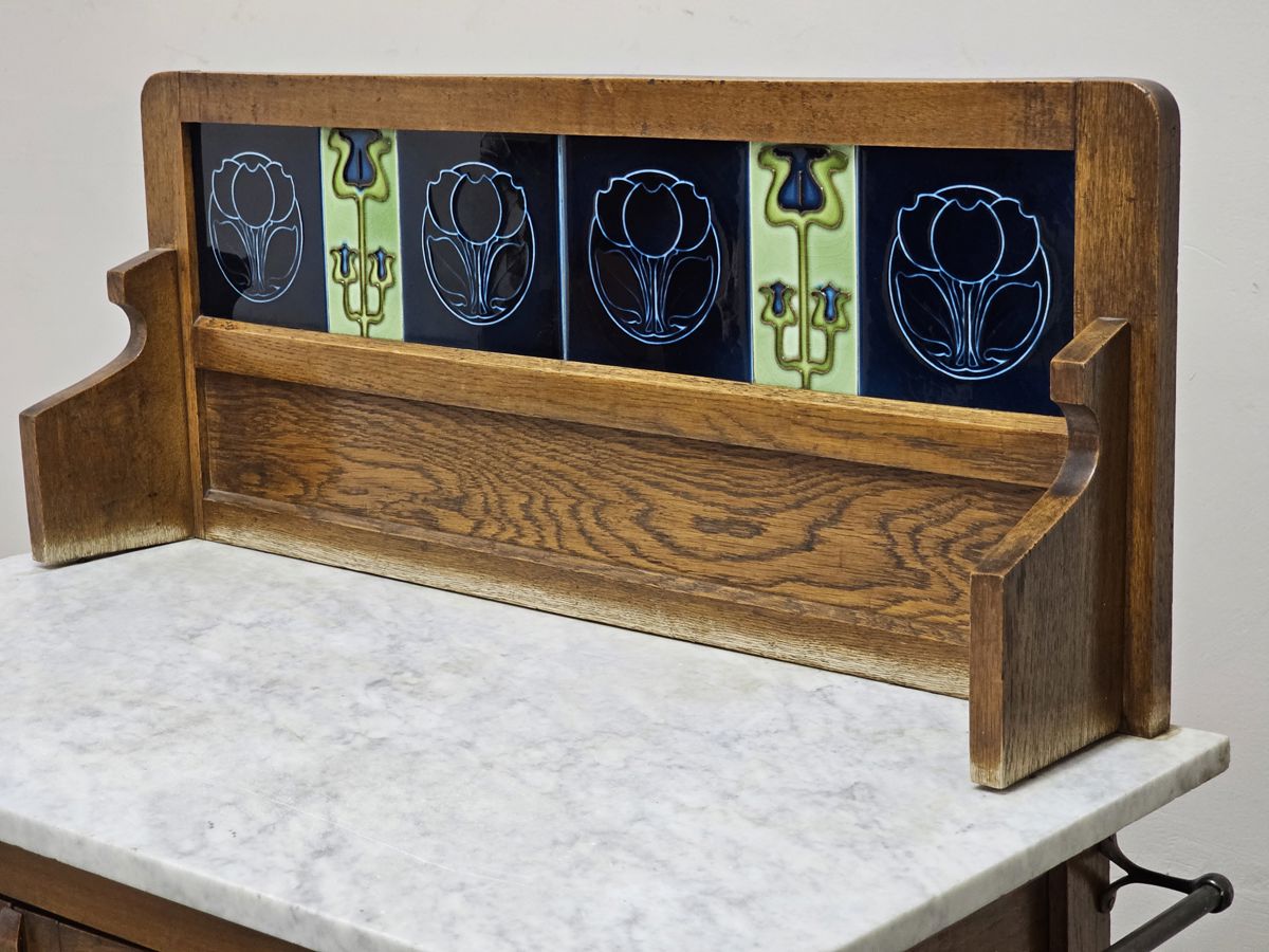 Vintage Oak Washstand on castors with tiled backsplash and Marble top