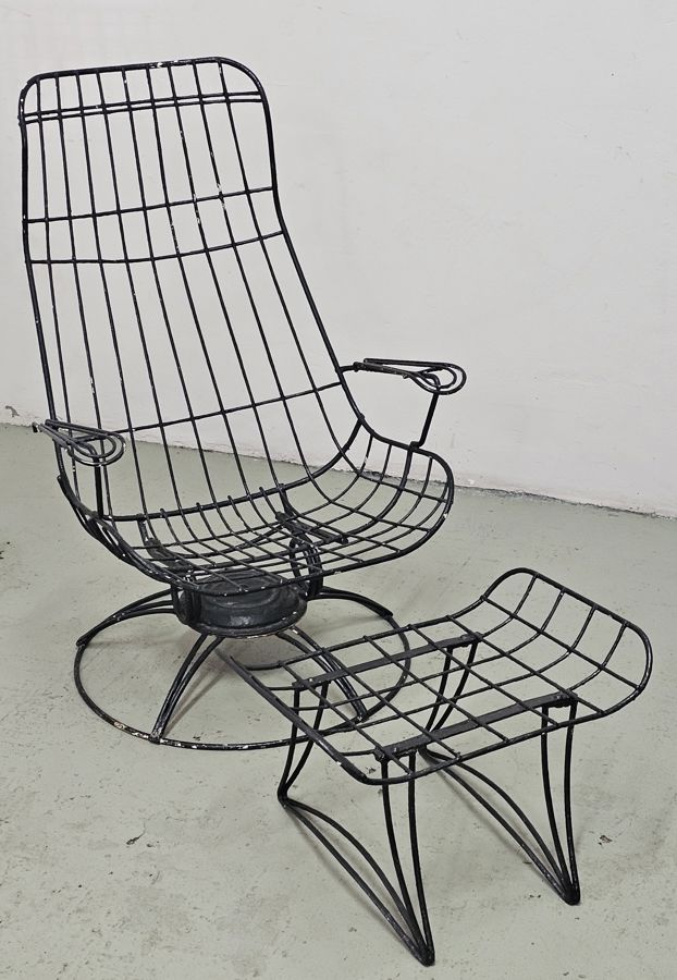 Vintage high quality wire/metal lounge chair with matching ottoman.