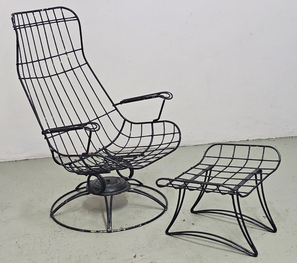 1950's Homecrest metal wire mid-century Chair and Ottoman