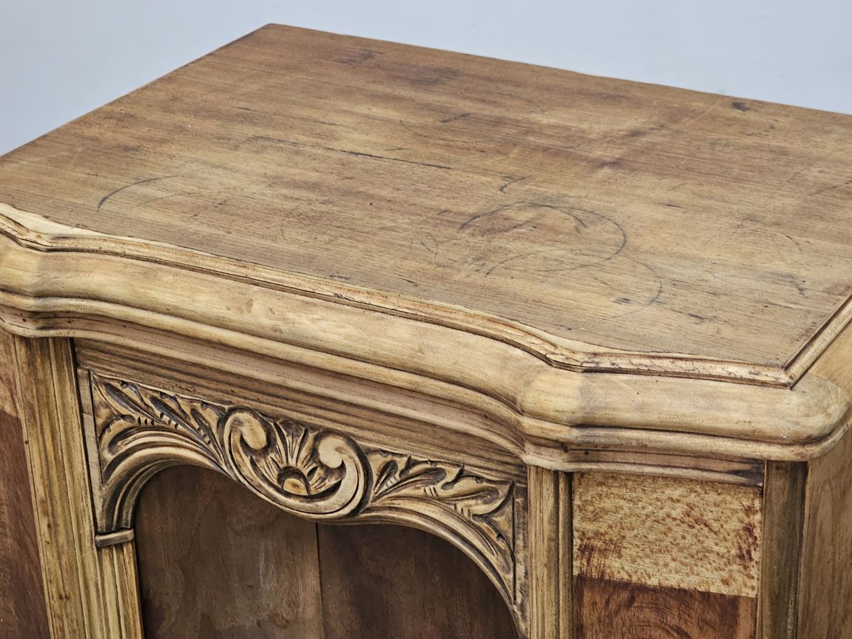 Condition: Good antique condition with some signs of age and use , Original radiogram cabinet, carefully sanded down and upcycled for modern use. A wooden top shelf has been inserted, along with an extra shelf in the bottom compartment for functional storage/display piece. Needs handles for sliding doors